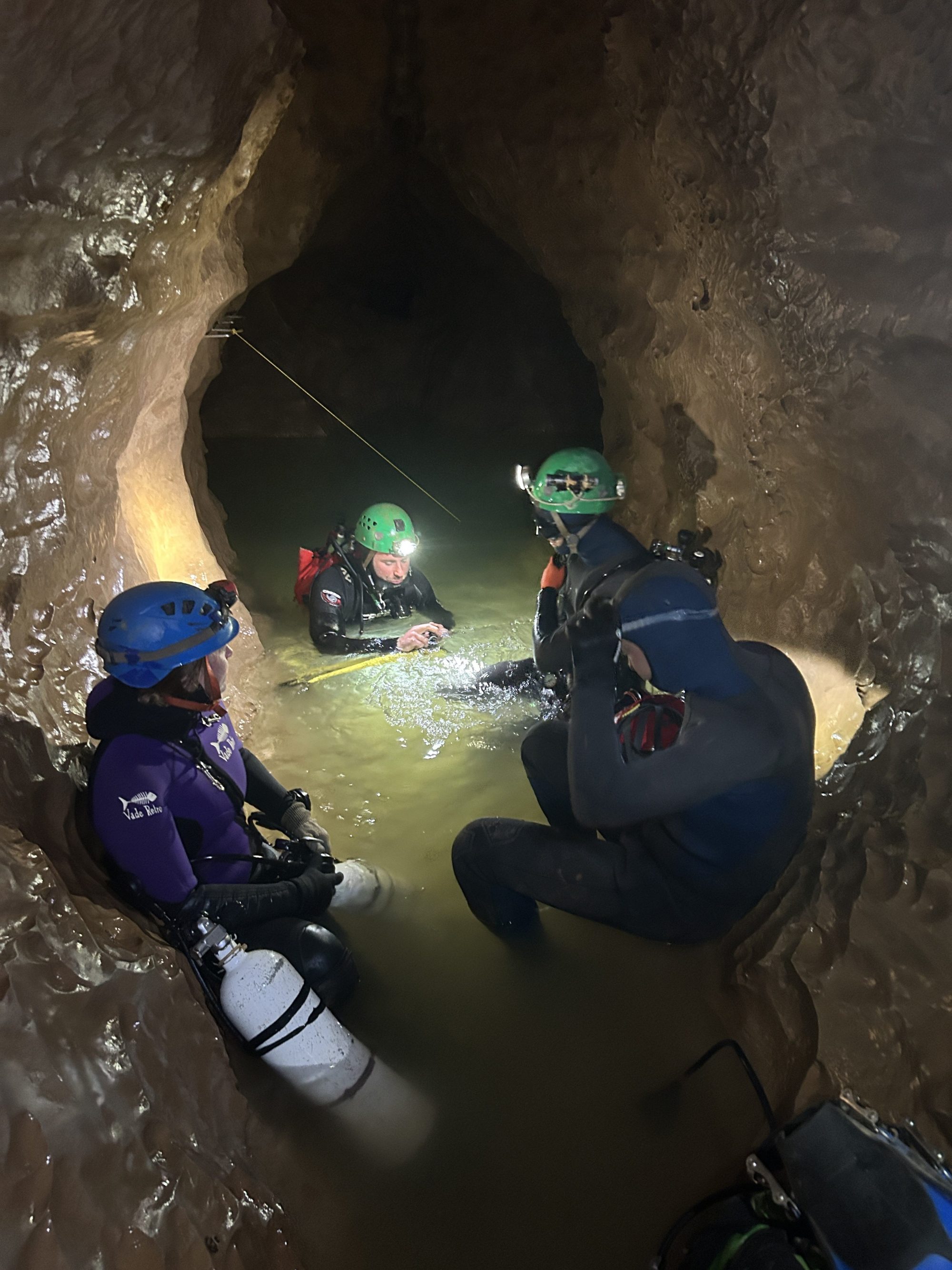 Une quarantaine de mètres de fil sont déroulés dans les lacs et les stagiaires suivent ce parcours pour découvrir le milieu. La visibilité est de l’ordre du mètre, ce n’est pas gênant vu la faible dimension de la galerie.