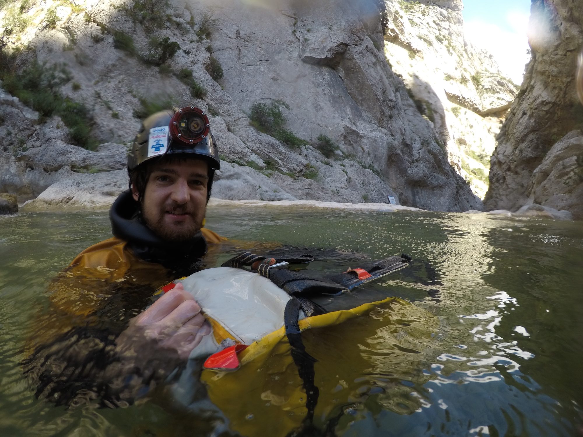 C’est après une petite collation pour nous maintenir en forme que nous commençons à nous préparer. Avant de partir nous croisons l’un des responsables de la structure de sports d’aventure présentes sur les berges de l’Agly qui pourra nous renseigner : tous les ans, l’entrée se referme, deux plongeurs viennent la ré-ouvrir mais il ne les a pas encore vu cette année. Il faut donc s’attendre à ce que l’entrée soit obstruée et que le courant soit par conséquent très fort.