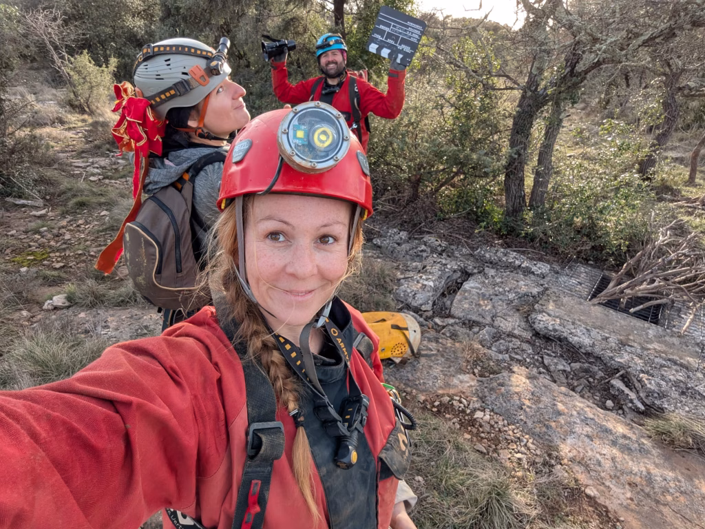 Il ne faudra pas si longtemps pour trouver la cavité (trop à mon goût dont la patience est semblable à celle d’un nouveau-né affamé…). Charles, chaud bouillant commence l’équipement pendant que Solène et moi en profitons pour râler un peu sur la nécessité d’équiper dans des puits étroits… Quelques mètres plus bas, la galerie s’élargit et nous sommes agréablement surpris par les lieux. Il aura quand même fallu faire un passage de noeud 3 mètres avant le fond, mais c’est pas grave on avait prévu des petits films drôles à tourner où il est justement question de noeud, alors ça tombe bien!